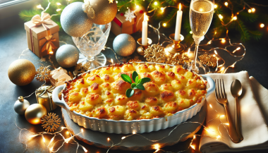 Descriere Cartofii gratinați cu brânză sunt un preparat delicios și reconfortant, ideal pentru mesele festive, cum ar fi cea de Revelion. Această rețetă combină textura cremoasă a brânzei cu aroma subtilă a cartofilor, creând o mâncare care îmbină perfect gustul și aspectul. Fie că sunt serviti ca garnitură sau ca fel principal, cartofii gratinați cu...