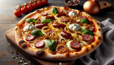 Introducere Infuzie de gusturi și texturi Pizza cu cârnați și ceapă caramelizată este o alegere excelentă pentru aceia cărora le plac combinațiile de arome dulci și sărate. Cârnații picanti bine prăjiți oferă un contrast perfect cu dulceața cepei caramelizate, iar mozzarella adaugă o consistență cremoasă și legătoare. Este o rețetă care impresionează...
