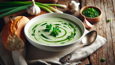Introducere Usturoiul verde, cunoscut și sub numele de usturoi tânăr, este o plantă armonioasă care adaugă o savoare delicată și un gust proaspăt în diverse preparate culinare. Supa-cremă de usturoi verde este un deliciu culinar care îmbină perfect aromele proaspete ale unor ingrediente simple, transformându-le într-un preparat fin și rafinat....