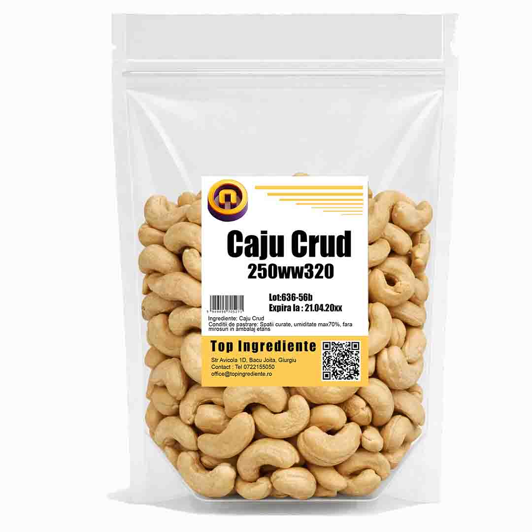 Caju crud natural, atent selecționat, neprăjit și fără sare, păstrând gustul autentic și proprietățile nutritive ale nucilor de caju. Textura sa fină și aroma delicată îl fac ideal atât pentru consum direct, cât și pentru utilizare în diverse rețete culinare.