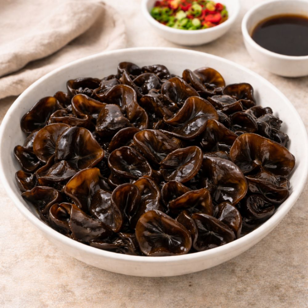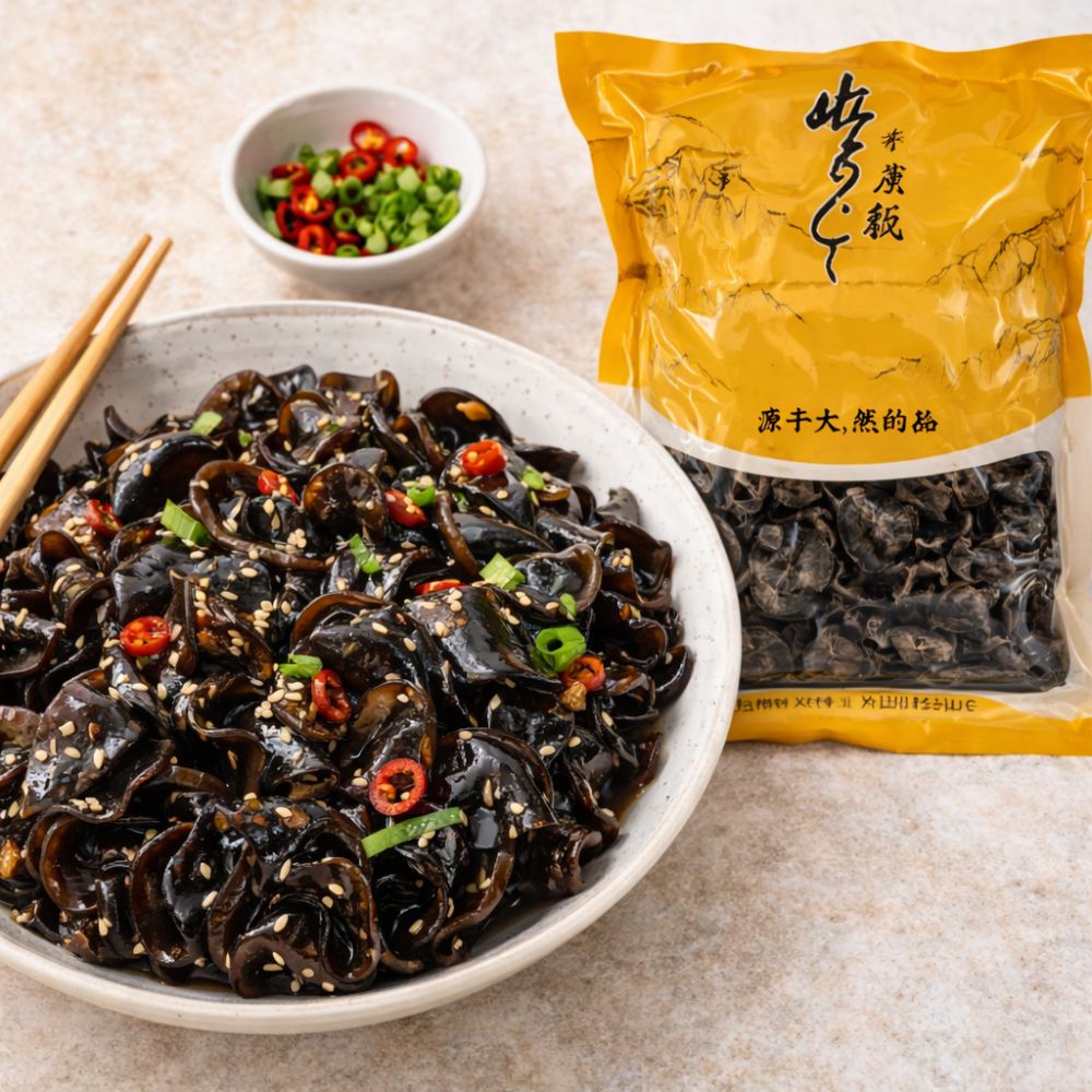 Ciupercile negre uscate Bamboo Fan (Auricularia auricula-judae), cunoscute și sub denumirea de Wood Ear sau „urechi de lemn”, sunt un ingredient tradițional în bucătăria asiatică.