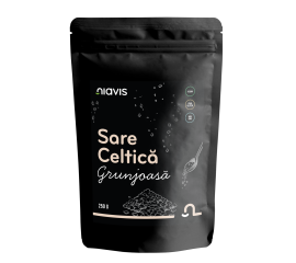Sare Celtica Grunjoasa 250g Sarea celtica este cunoscuta si sub numele de sare gri, datorita culorii sale care o diferentiaza de alte tipuri de sare cum sunt cele de Himalaya sau sarea obisnuita de mare. Sarea celtica este o sare de mare care se extrage din Atlantic, in Franta, pe coastele...
