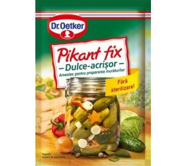 Dr. Oetker Picant Fix Dulce-acrisor este un mix special conceput pentru a realiza prepararea rapidă a murăturilor delicioase și pline de aromă. Această rețetă inovatoare a fost creată pentru a transforma diferite legume proaspete în murături gustoase, care pot fi păstrate în borcane pentru a fi savurate de-a lungul timpului.