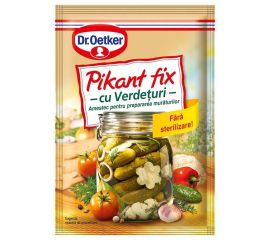 Dr. Oetker Picant Fix cu Verdeturi este un mix special conceput pentru a realiza prepararea rapidă a murăturilor delicioase și pline de aromă. Această rețetă inovatoare a fost creată pentru a transforma diferite legume proaspete în murături gustoase, care pot fi păstrate în borcane pentru a fi savurate de-a lungul timpului.