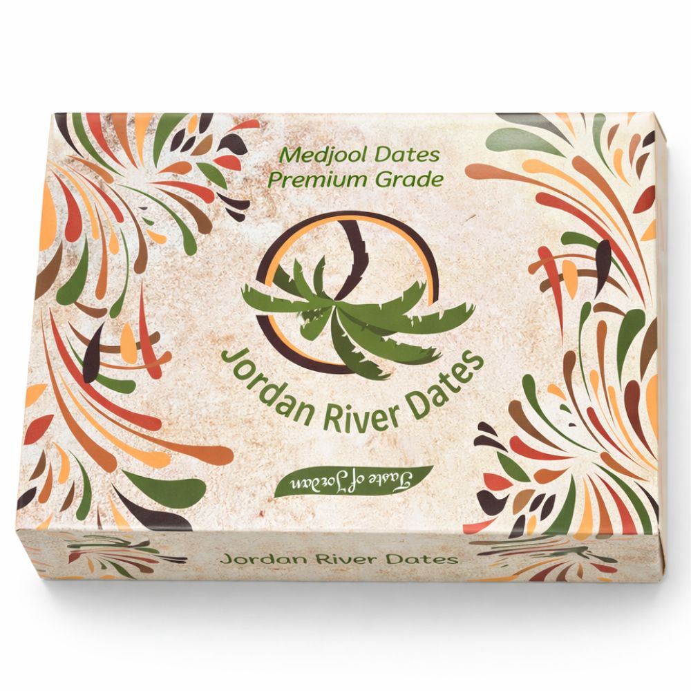Curmale Medjool premium Jordan River Dates, foarte mari și cărnoase, cu gust natural intens dulce. Ideale pentru consum ca atare, deserturi, platouri festive sau uz profesional.