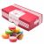 Cutie pentru fursecuri / macarons sau alte produse de cofetarie si patiserie, de culoare rosu cu dungi albe.