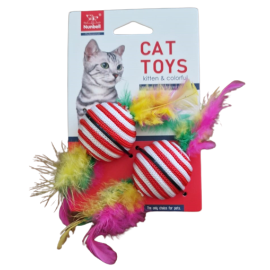 Jucarie pentru Pisici Minge din Textil cu Pene Multicolore - set 2 bucati - Nunbell ...