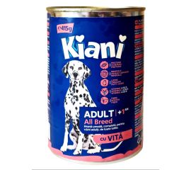 Kianu aroma de vita este o hrana umeda completa, cu un aport echilibrat de proteine, lipide, minerale si vitamine, destinata exclusiv animalelor de companie adulte. Kiani  aroma de vita este o hrană gustoasă, pe care cățelușii o vor îndrăgi și o vor consuma cu placere.Hrana umeda pentru caini contine un nivel semnificativ de apa, de obicei intre 70% si 85%, ceea ce ajuta la mentinerea unei hidratatii adecvate. Acest aspect este deosebit de important pentru caini, deoarece contribuie la functionarea corecta a rinichilor si la evitarea problemelor legate de deshidratare.