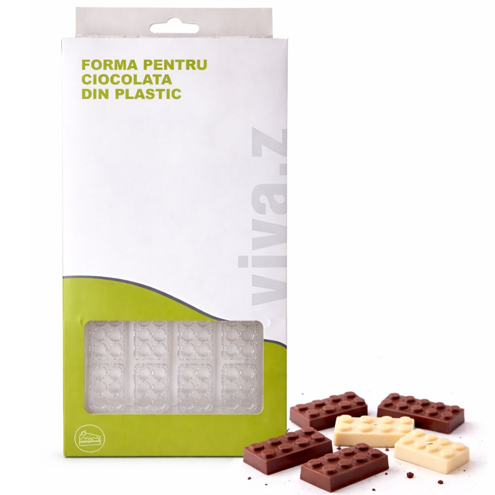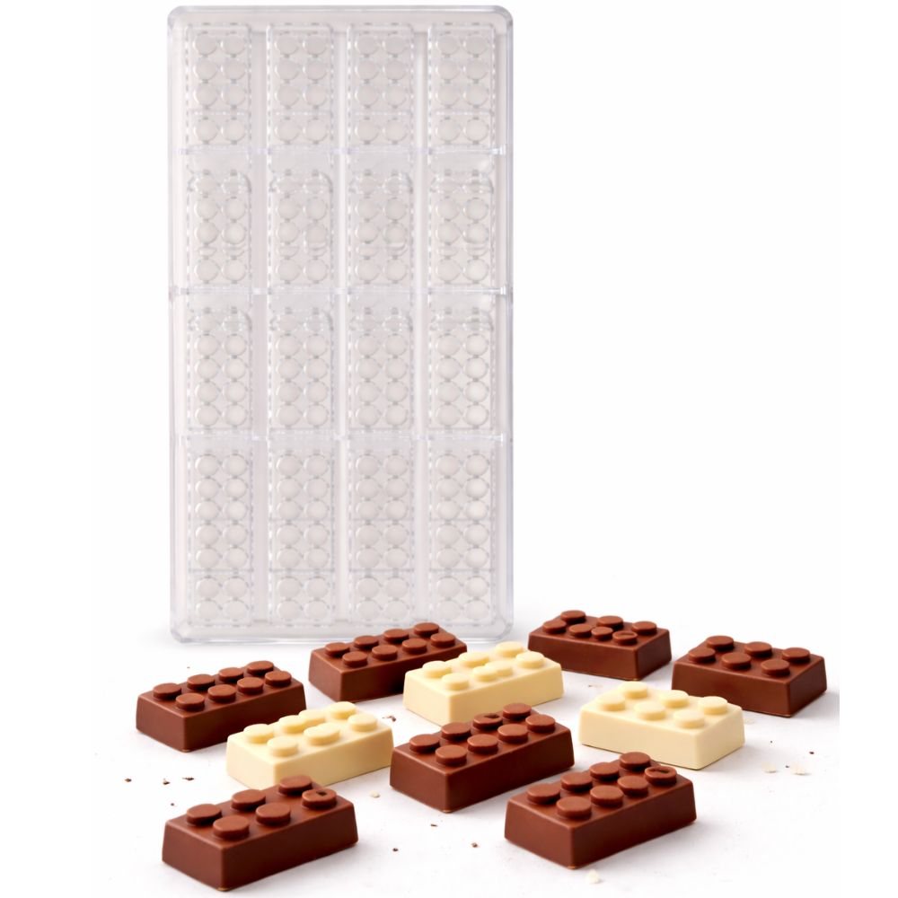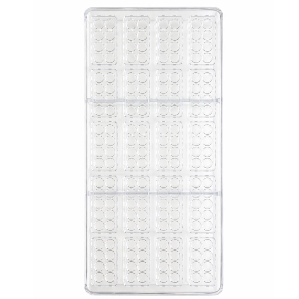 Formă profesională pentru realizarea mini tabletelor de ciocolată, realizată din plastic alimentar transparent. Modelul este dreptunghiular, cu design reliefat tip tabletă, oferind un aspect modern și bine definit fiecărei bucăți.