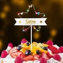 Topper Led - Mesaj "Happy Birthday" - Stea - Galben / Auriu - Plastic- A13436
