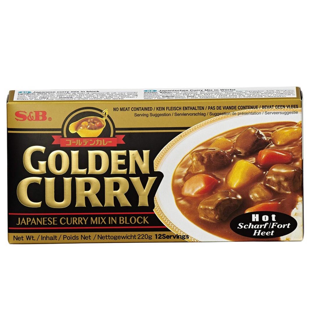 „Golden Curry” este un mix japonez de condimente și agenți de îngroșare, presat sub formă de bloc solid (similar ciocolatei), care se dizolvă în apă fierbinte pentru a forma un sos curry bogat și omogen.