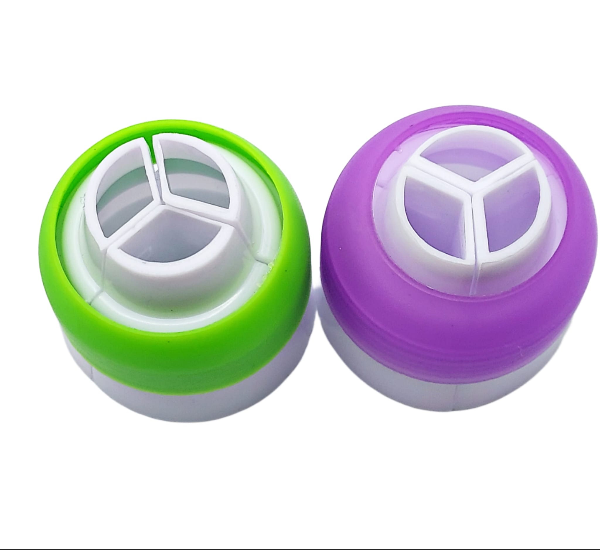 - Adaptor pentru duze: adaprorul este format din 3 adaptoare de dimensiuni egale, ce sunt unite printr-un inel de strangere, pentru a facilita realizarea florilor multicolore, prin atasarea a 3 pungi de ornare, umplute cu 3 creme de culori diferite